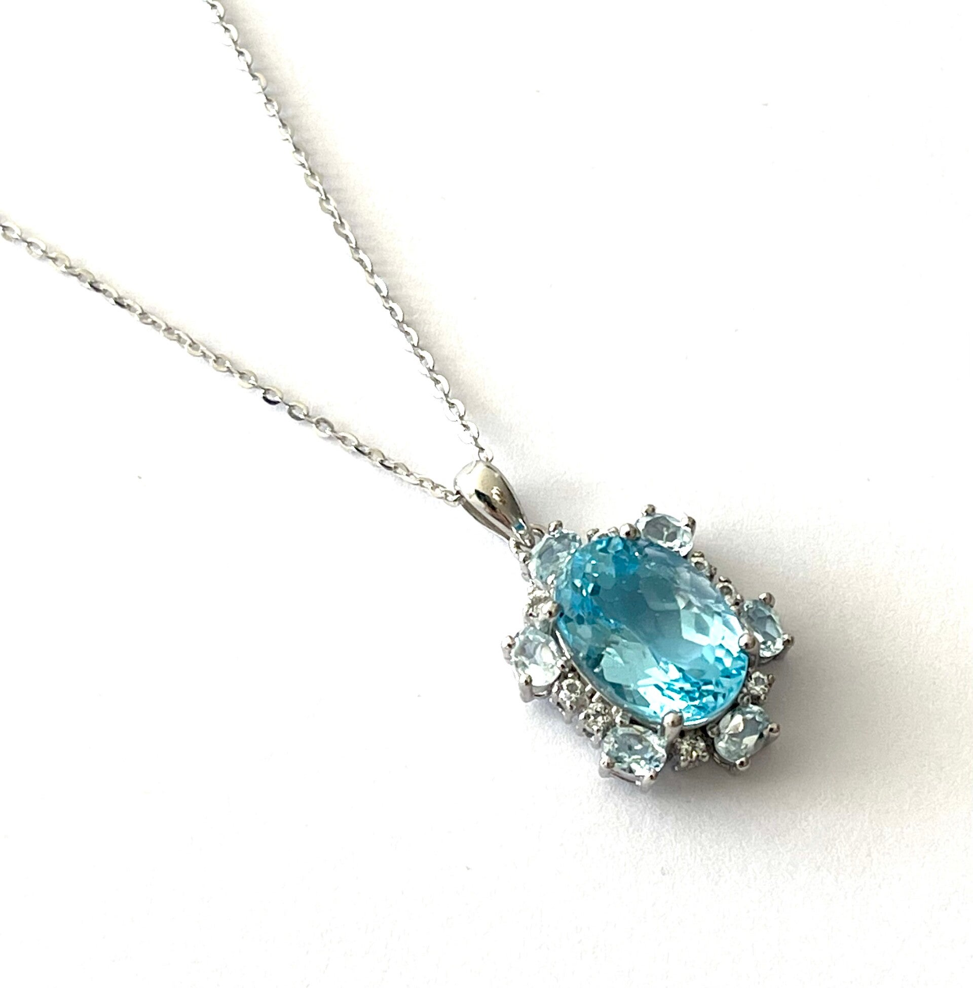 Deze prachtige Zilveren hanger is bezet met Blauw Topaas