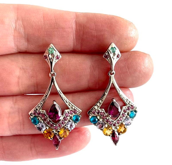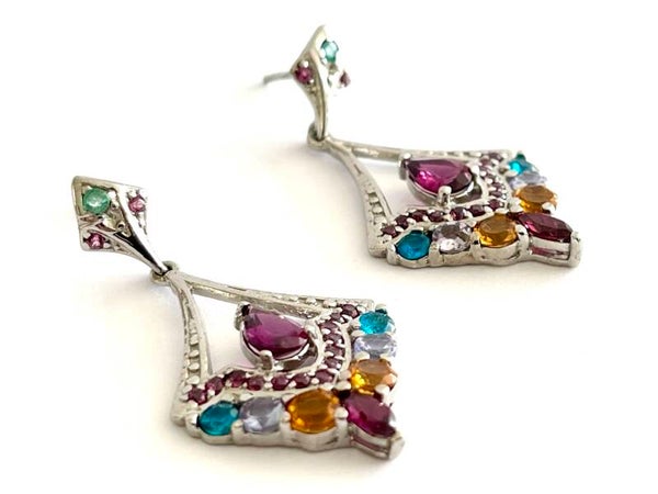 Deze prachtige Zilveren multicolor oorstekers zijn bezet met Rhodoliet, Tanzaniet, Citrien en Apatiet.