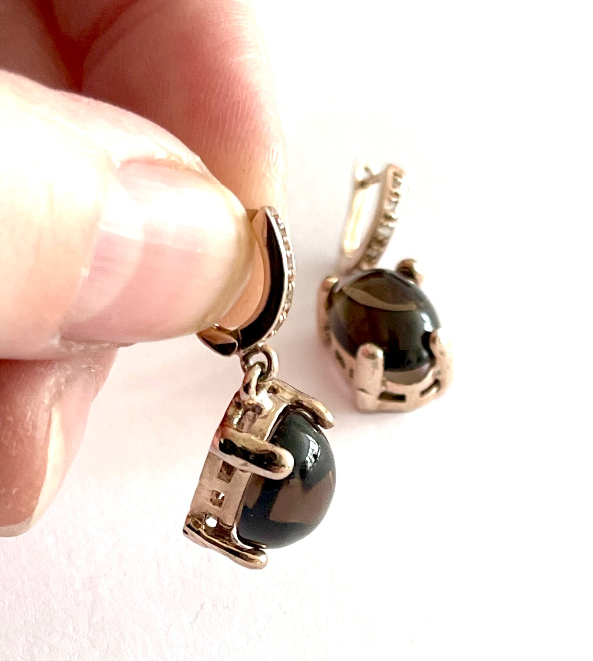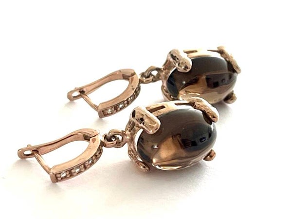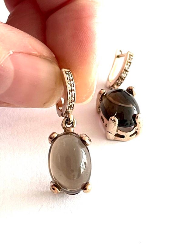 Deze prachtige gouden oorbellen gezet met Rookkwarts en Zirkonia
