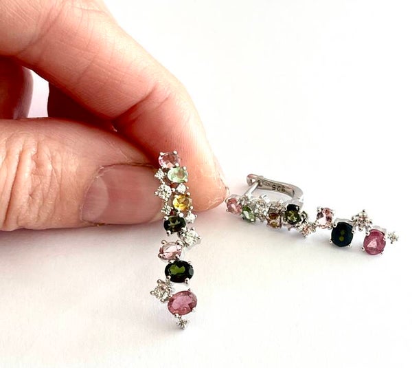 Deze prachtige Zilveren oorbellen zijn bezet met een Tourmalijn en Zirkonia