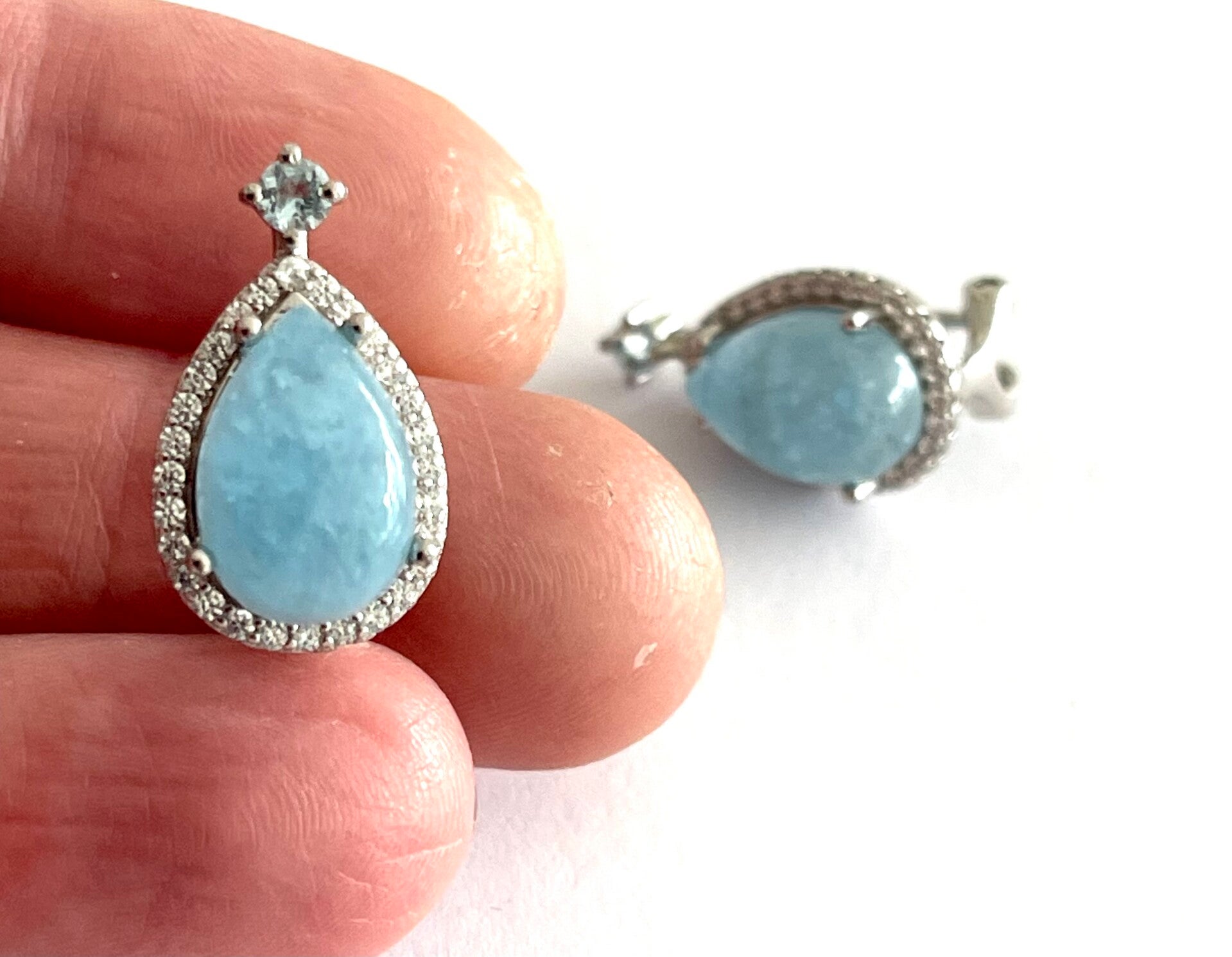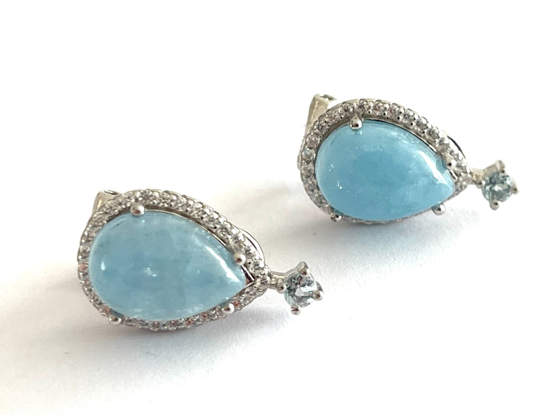 Deze prachtige Zilveren oorbellen zijn bezet met Aquamarijn en Zirkonia