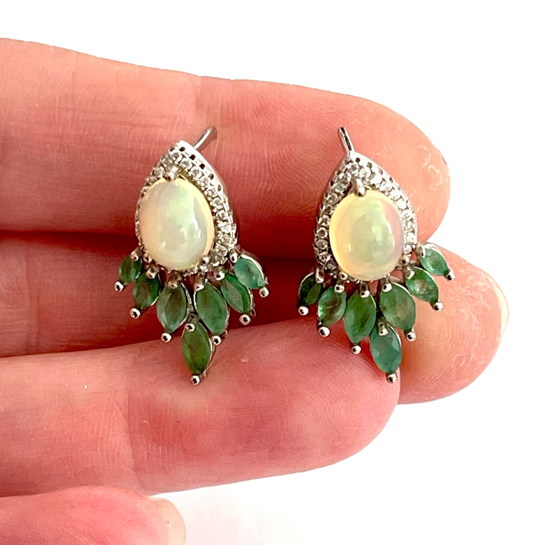 Deze prachtige oorbellen zijn bezet met Opaal, Smaragd en Zirkonia