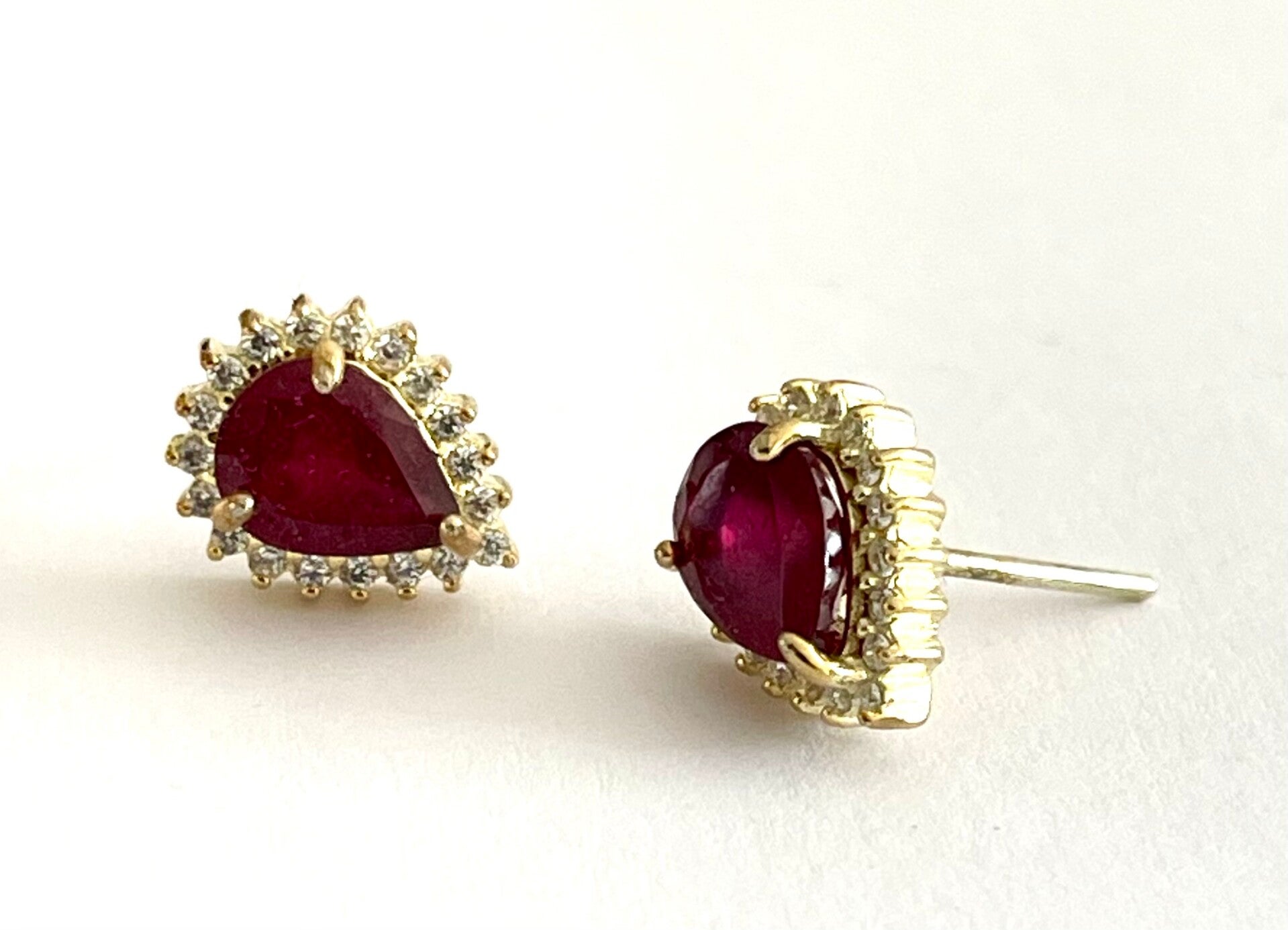 Deze prachtige oorbellen met vergulde details zijn bezet met Robijn en Zirkonia