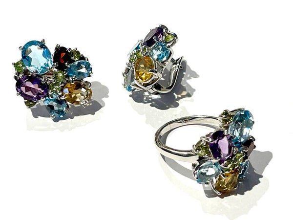 Stenen: Swiss blue Topaz, Amethyst, Citrine, Garnet, Peridot