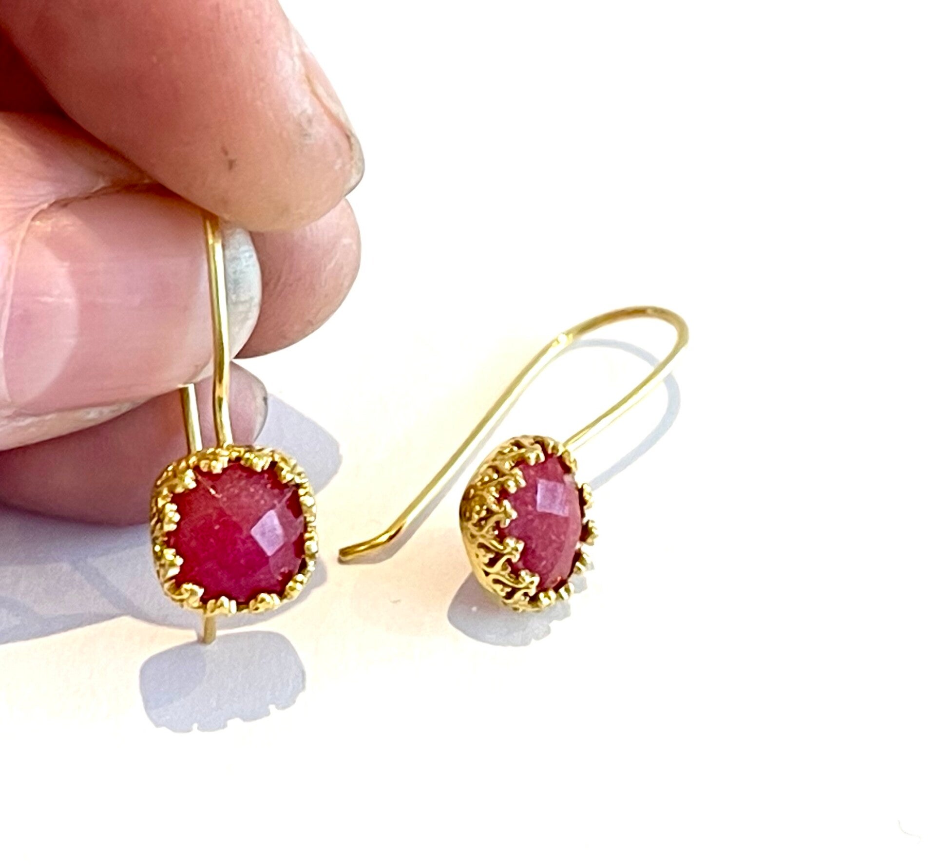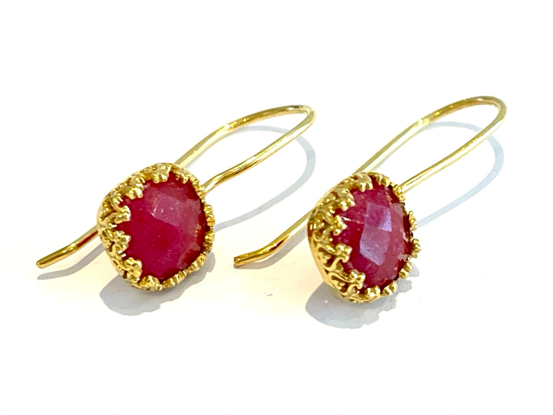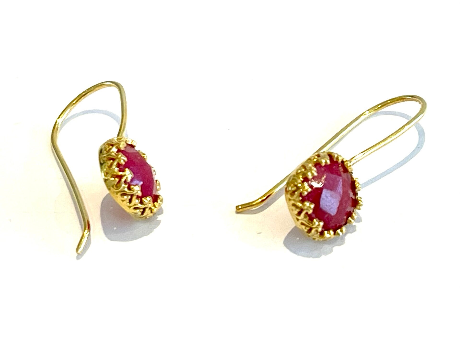 Deze prachtige vergulden oorbellen zijn bezet met Robijn