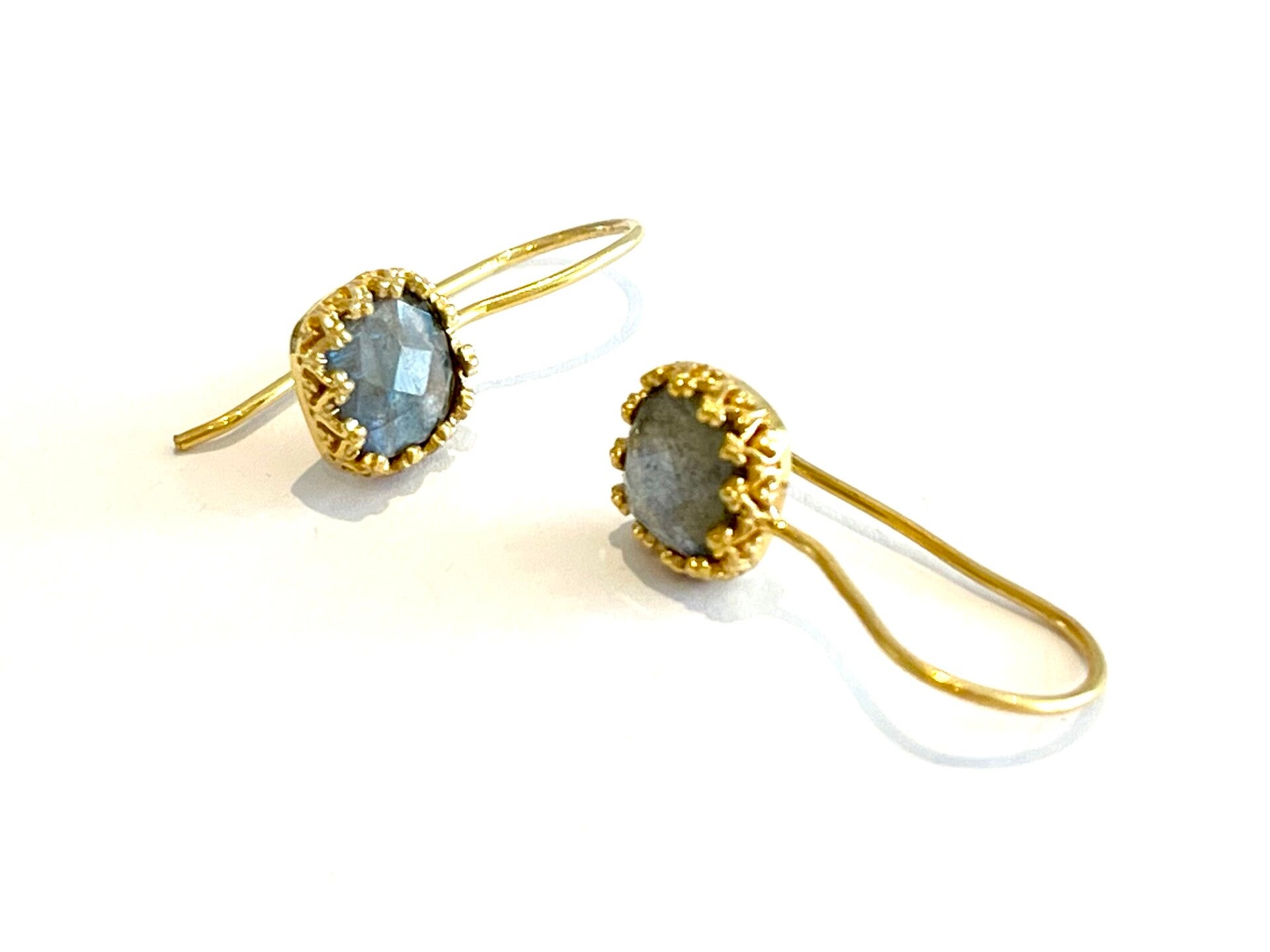 Deze prachtige vergulden oorbellen zijn bezet met Labradoriet