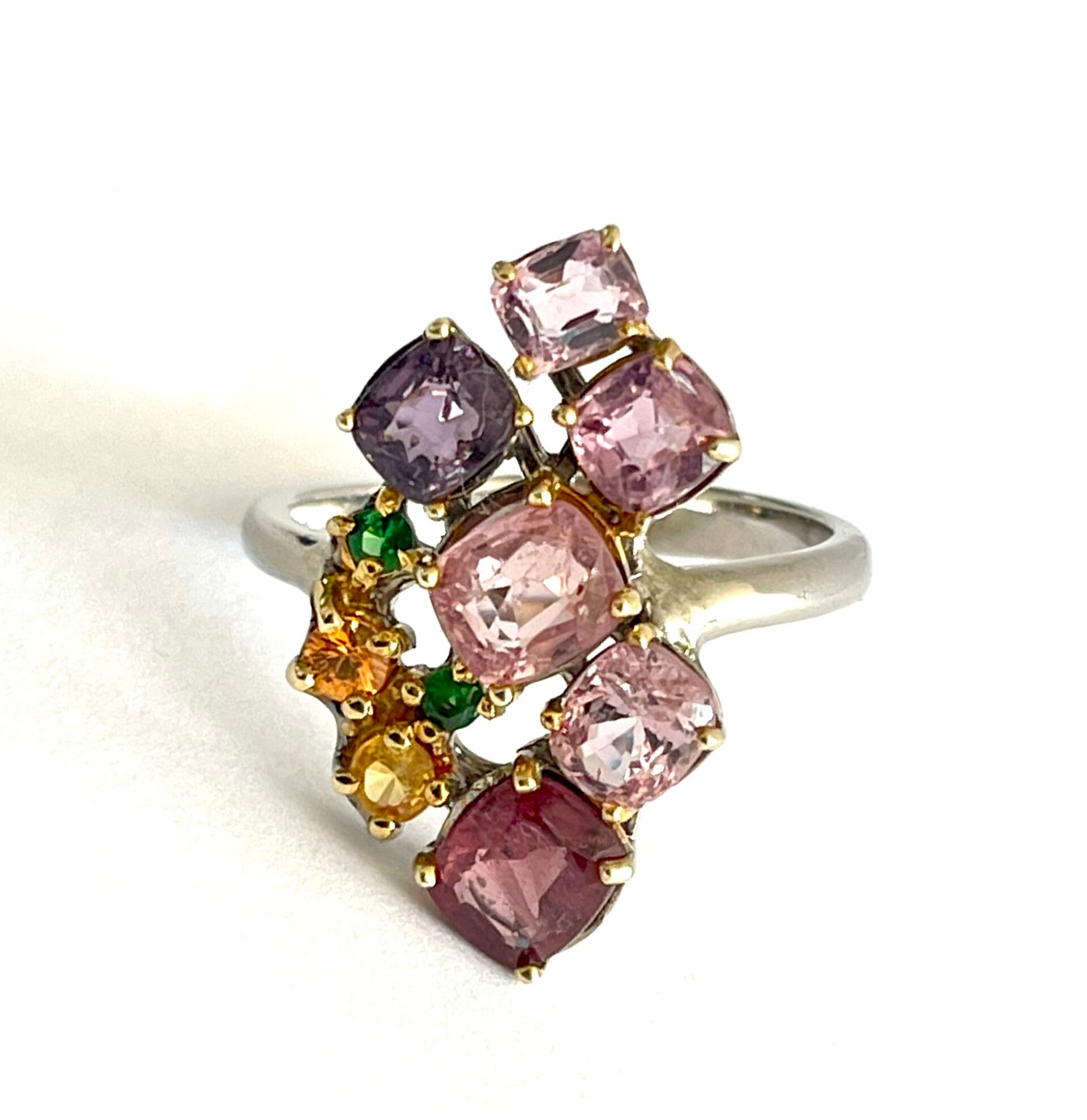 Zilveren ring met Tourmaline, Citrine en Chromium Diopsite