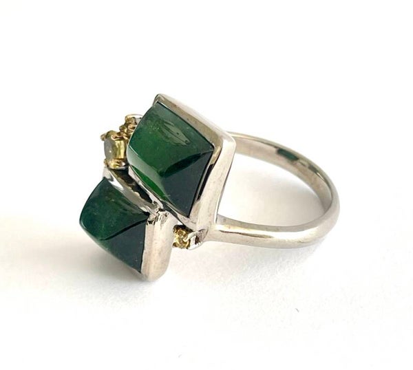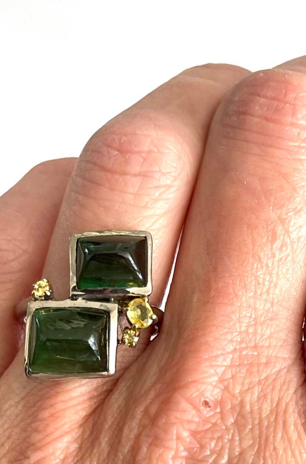 Deze prachtige ring zilveren is bezet met Tourmaline en Citrine.