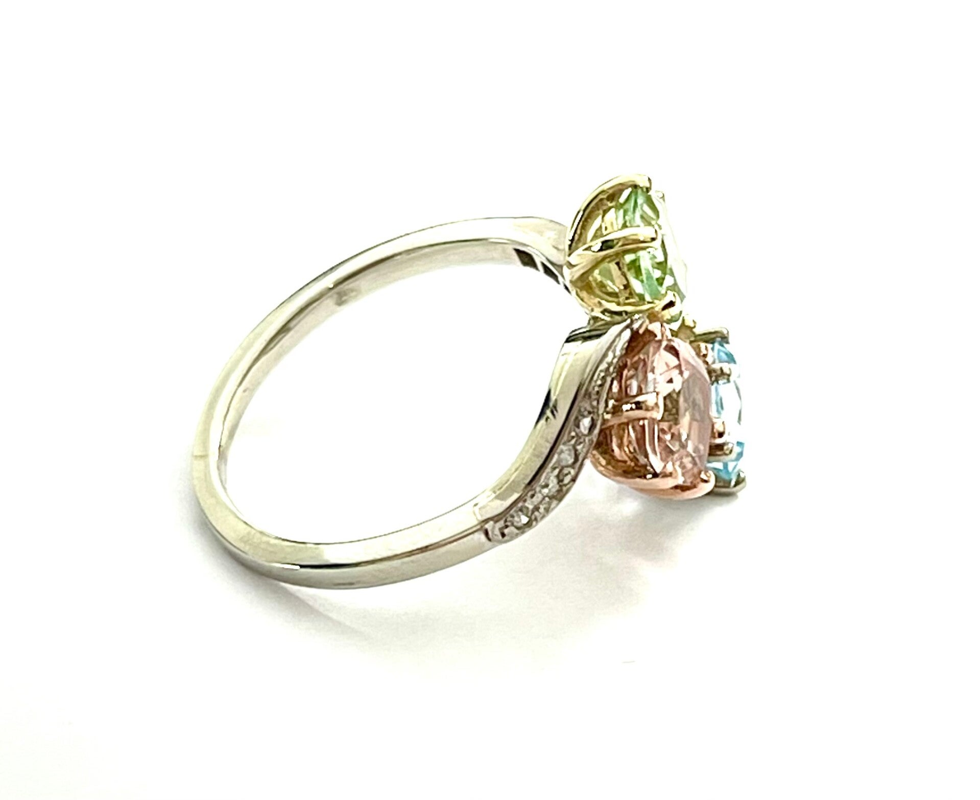 Colors ring Witgoud met Prasioliet, Aquamarijn, Morganiet en Diamant