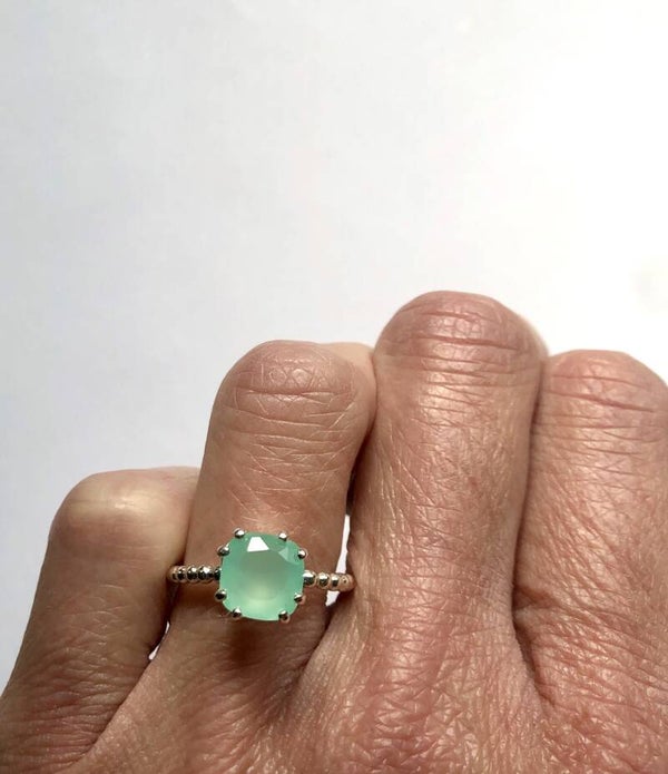 Deze prachtige handvervaardigde zilveren ring bezet met Chalcedony behoort tot onze Rosita's Mix collectie.