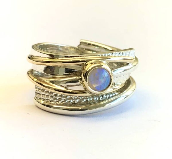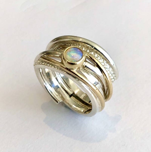 Deze schitterende handvervaardigde zilver en geelgouden ring met Opaal behoort tot onze La Vie collectie.