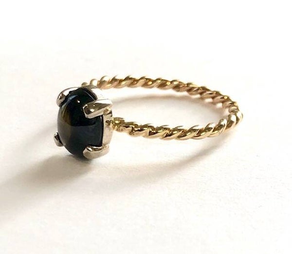 Deze prachtige handvervaardigde Gouden ring met Witgouden zetting is bezet met Black Star Sapphire behoort tot onze Rosita's Mix collectie.