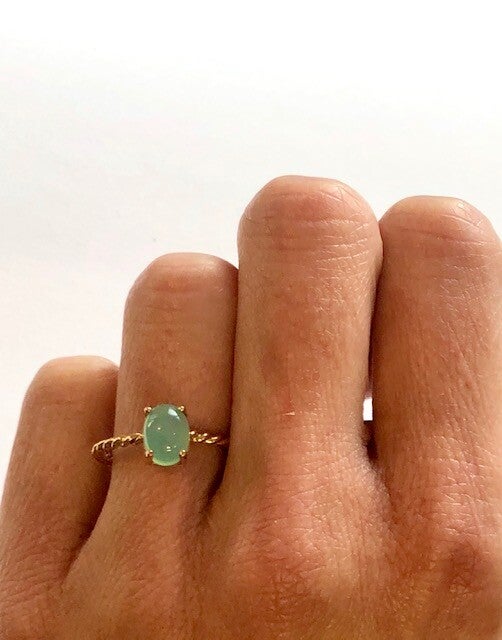 Deze prachtige handvervaardigde Roségouden ring bezet met Green Chalcedony behoort tot onze Rosita's Mix collectie.
