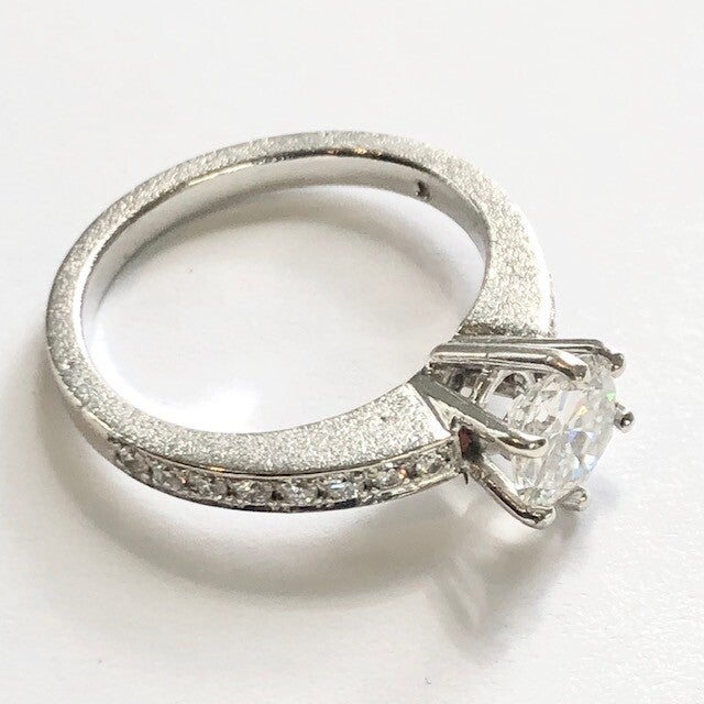 Deze prachtige handvervaardigde 14 krt Witgouden ring is bezet met briljant geslepen Diamanten.
