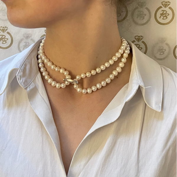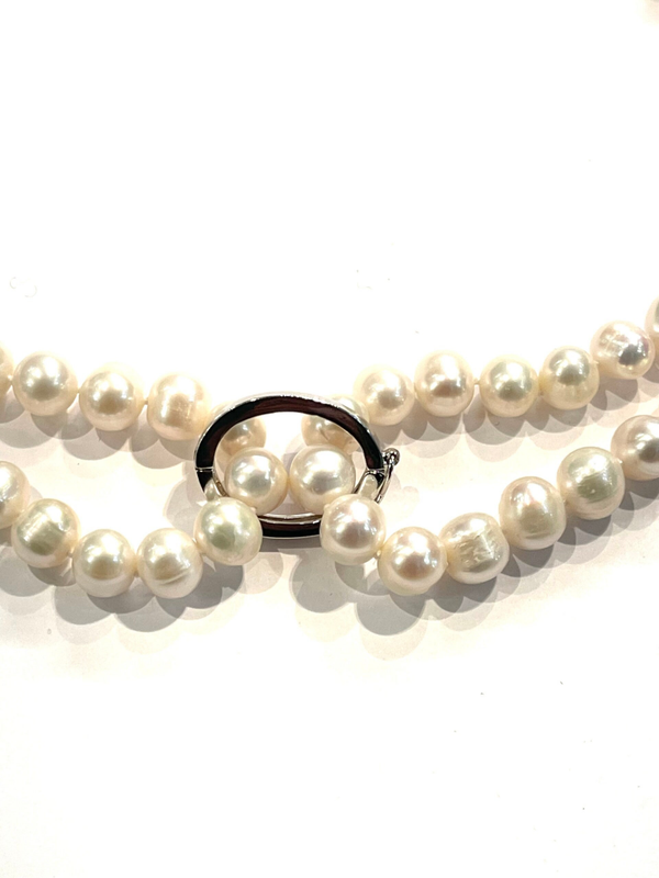 Prachtig Zoetwaterparel collier met een stalen collier clip.