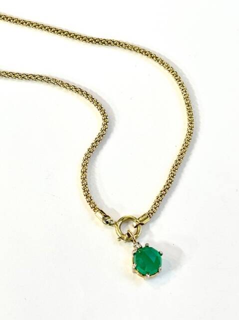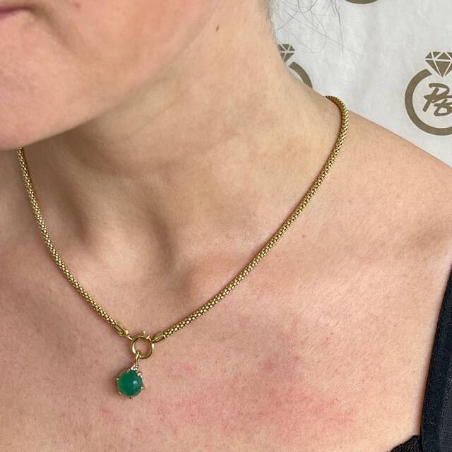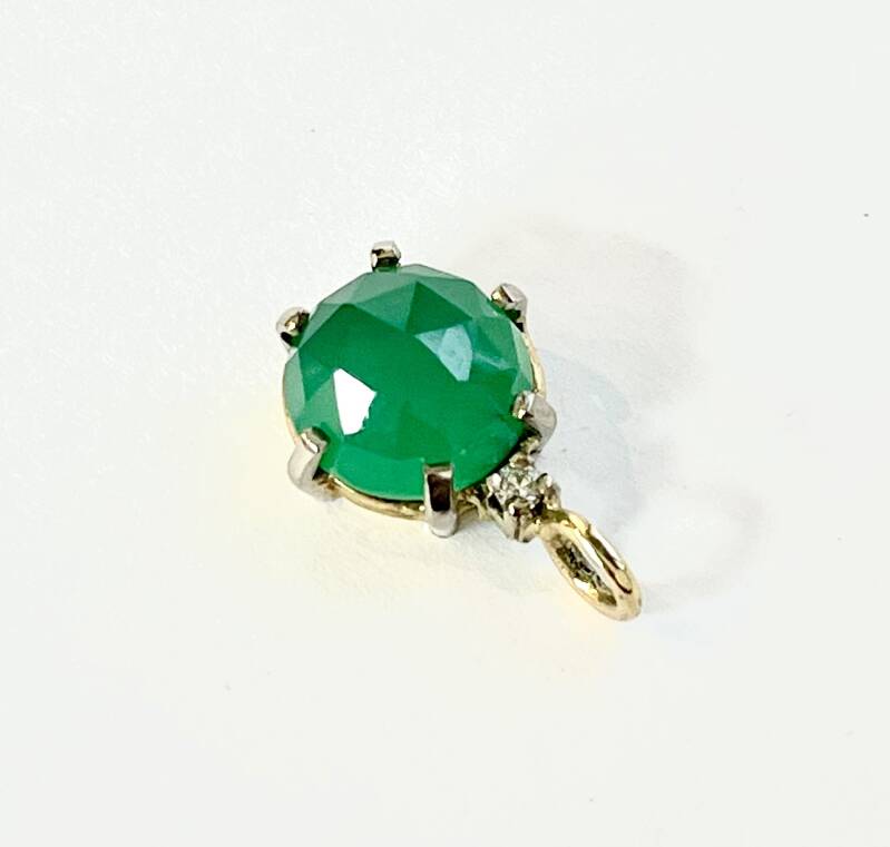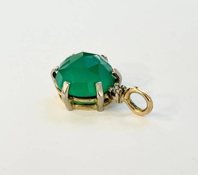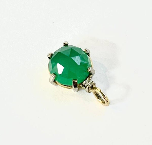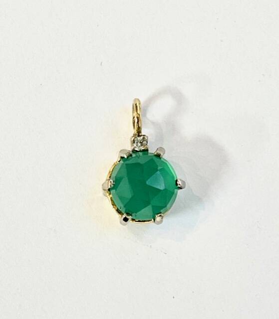 Prachtig handvervaardigde Geelgouden met Witgouden hanger bezet met Groene Onyx en Diamant.