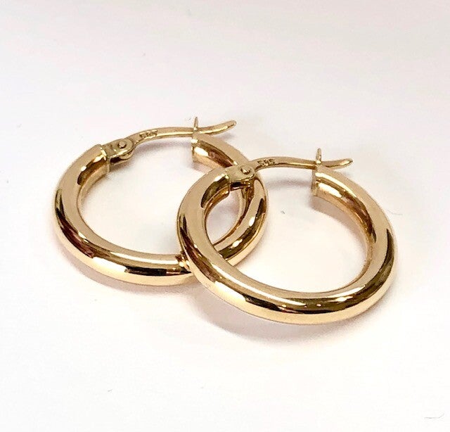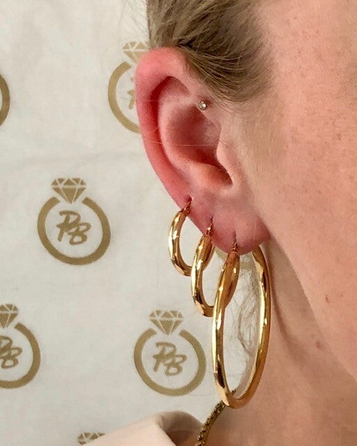 Materiaal: 14 krt Geelgoud buis met Zilveren kern. (Dit is een echte gouden oorbel, geen vergulde oorbel)