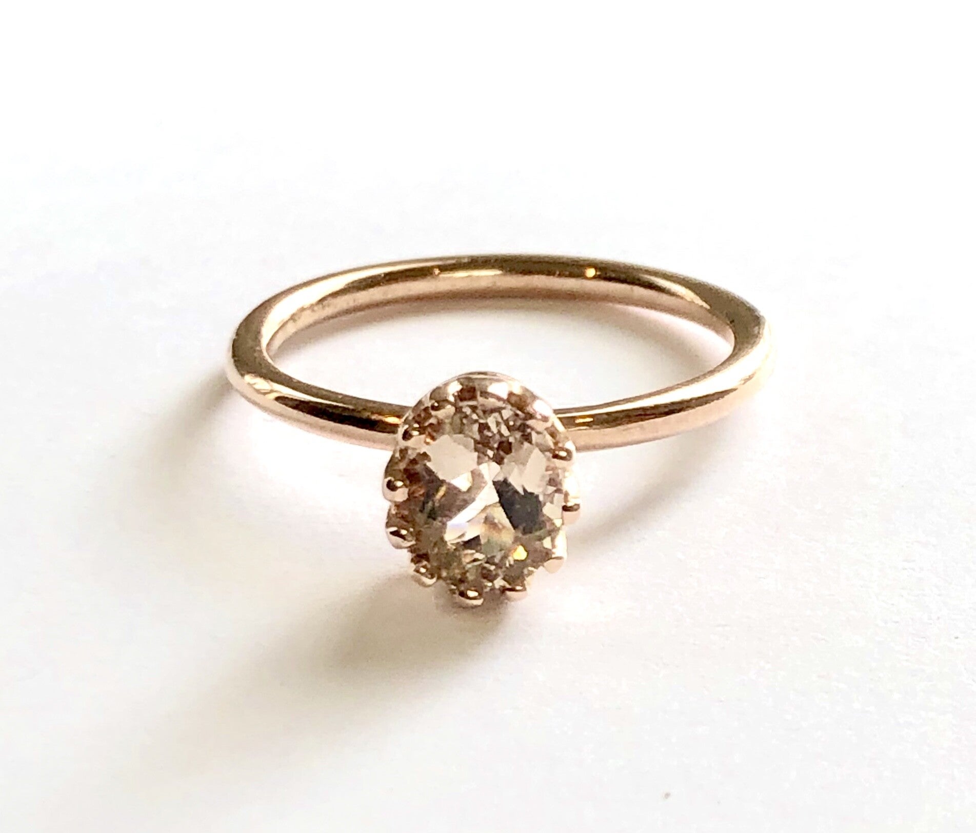 Deze prachtige handvervaardigde Roségouden ring bezet met een ovaal geslepen Morganite behoort tot onze Rosita's Mix collectie.