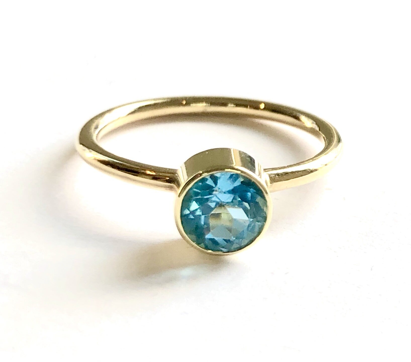 Deze prachtige handvervaardigde Geelgouden ring bezet met een Topaz behoort tot onze Rosita's Mix collectie.