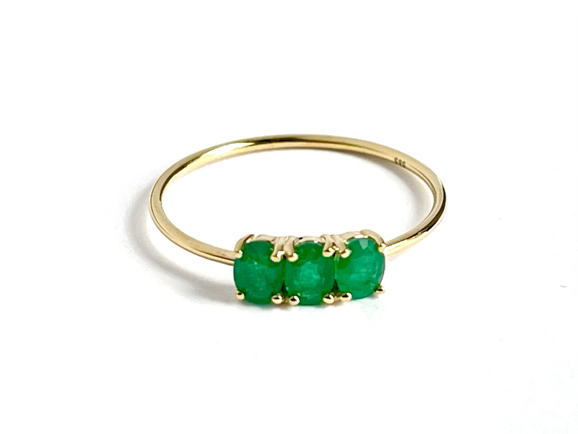 Deze prachtige 14 karaat Gouden ring is bezet met Smaragd.