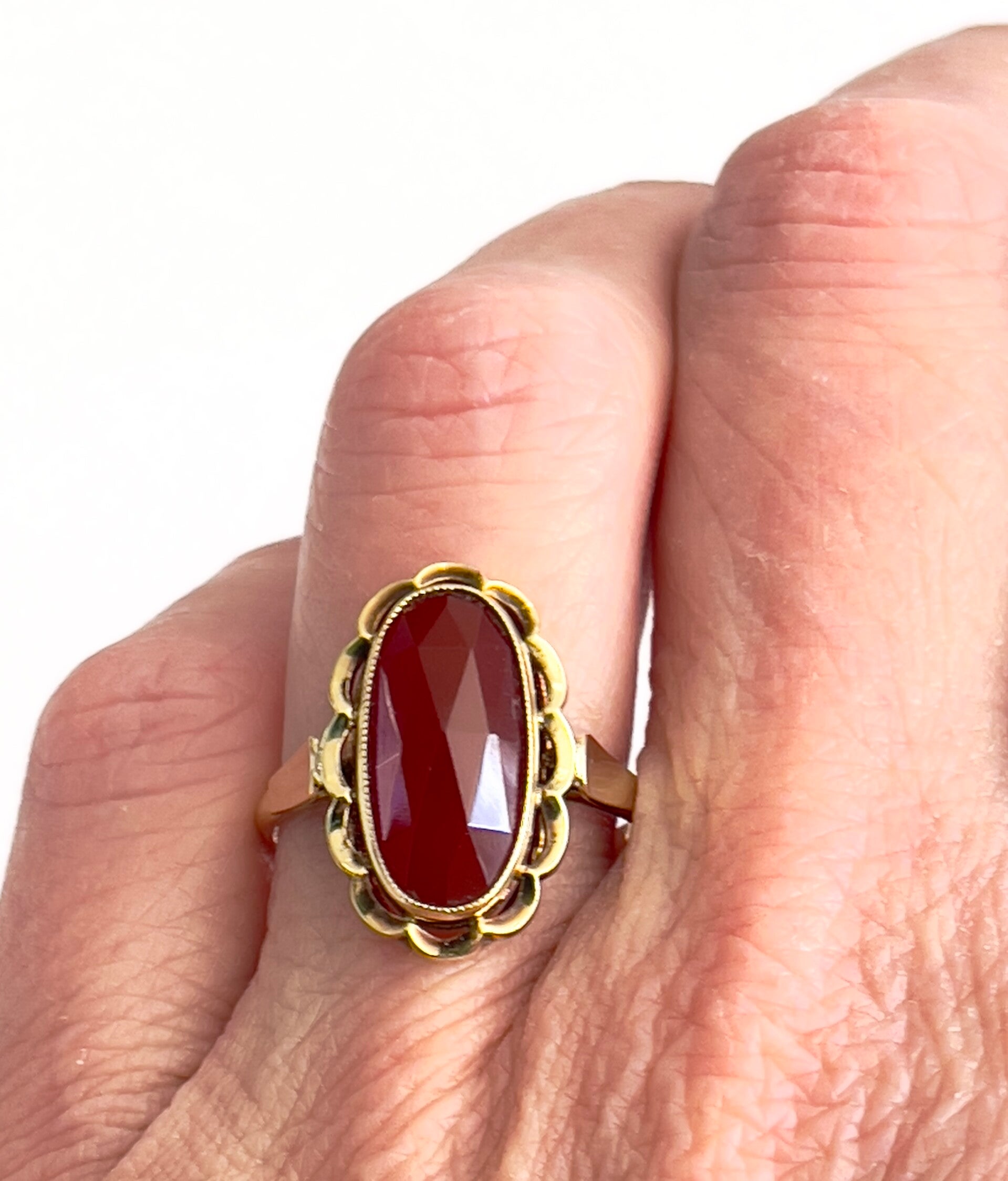 Prachtige vintage Geelgouden ring met een synthetisch Alexandriet.