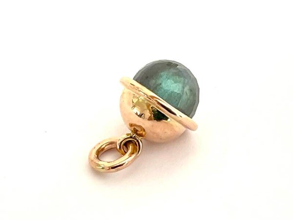 Prachtig handgemaakte Roségouden hanger met een gefacetteerde Labradoriet bol.