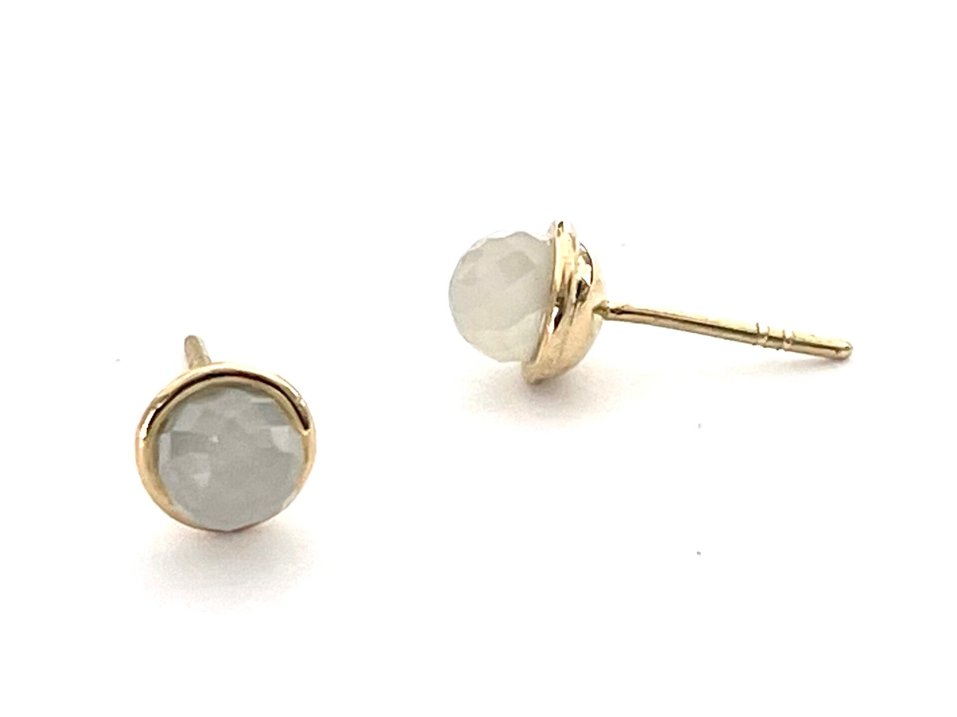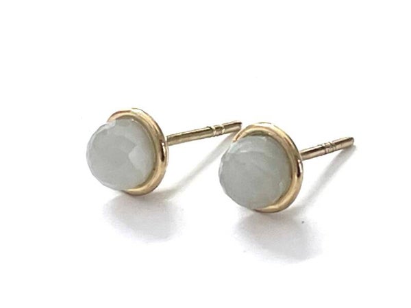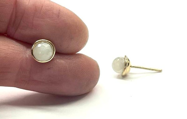 Prachtig handgemaakte Geelgouden sphere oorbellen met een gefacetteerde maansteen bol.