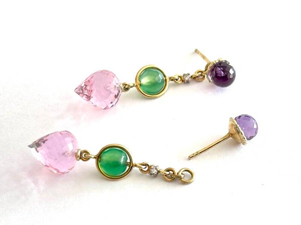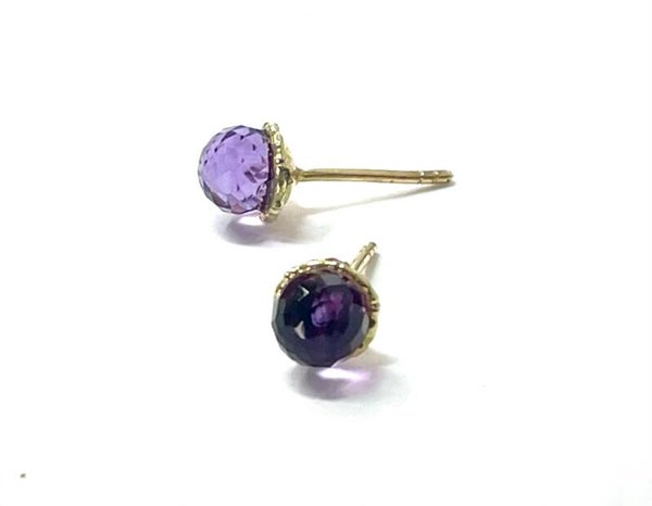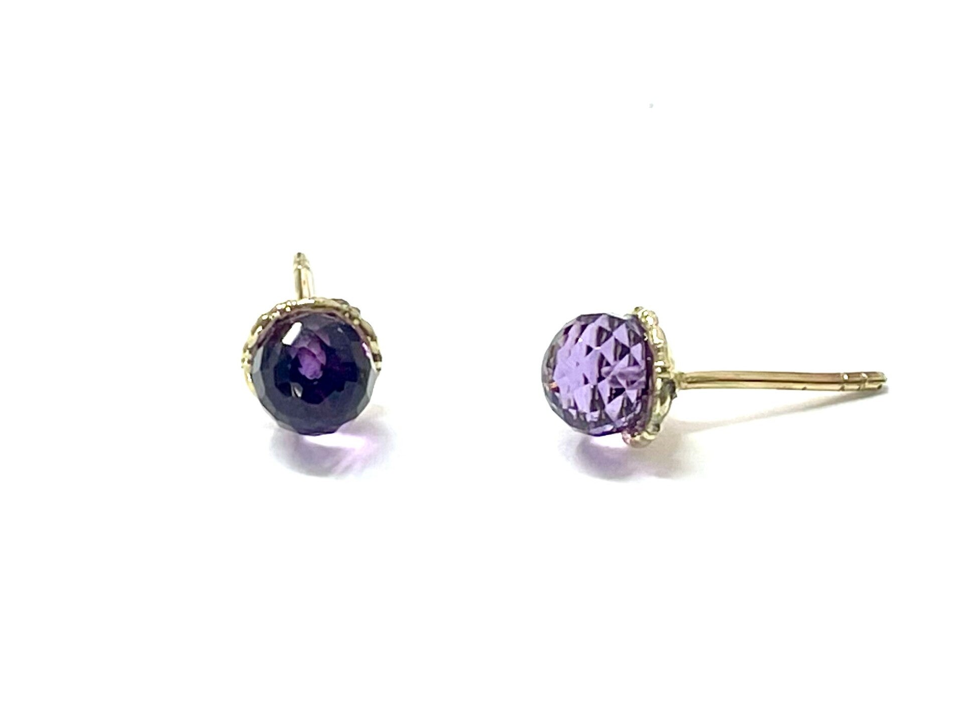 Prachtig handgemaakte Geelgouden sphere oorbellen met een gefacetteerde amethist bol.