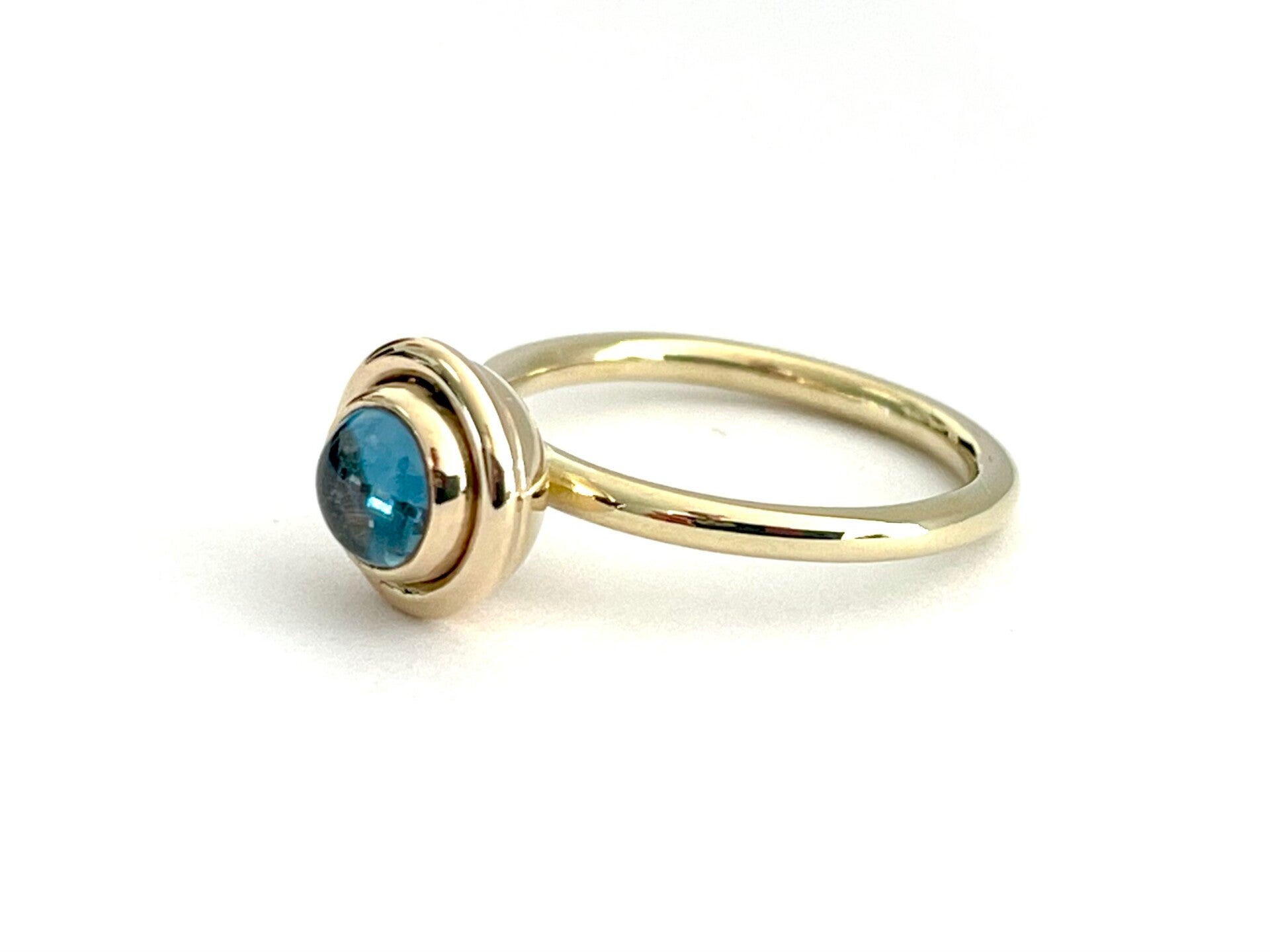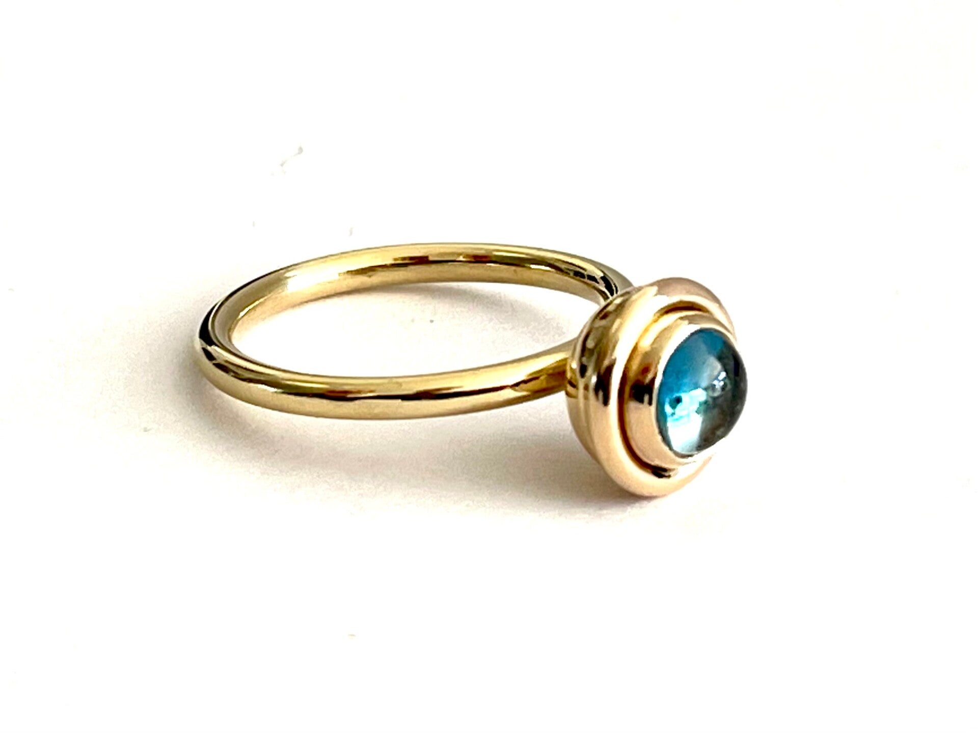 Deze prachtige handvervaardigde gouden ring bezet met Blauw Topaas behoort tot onze Rosita's Mix collectie.