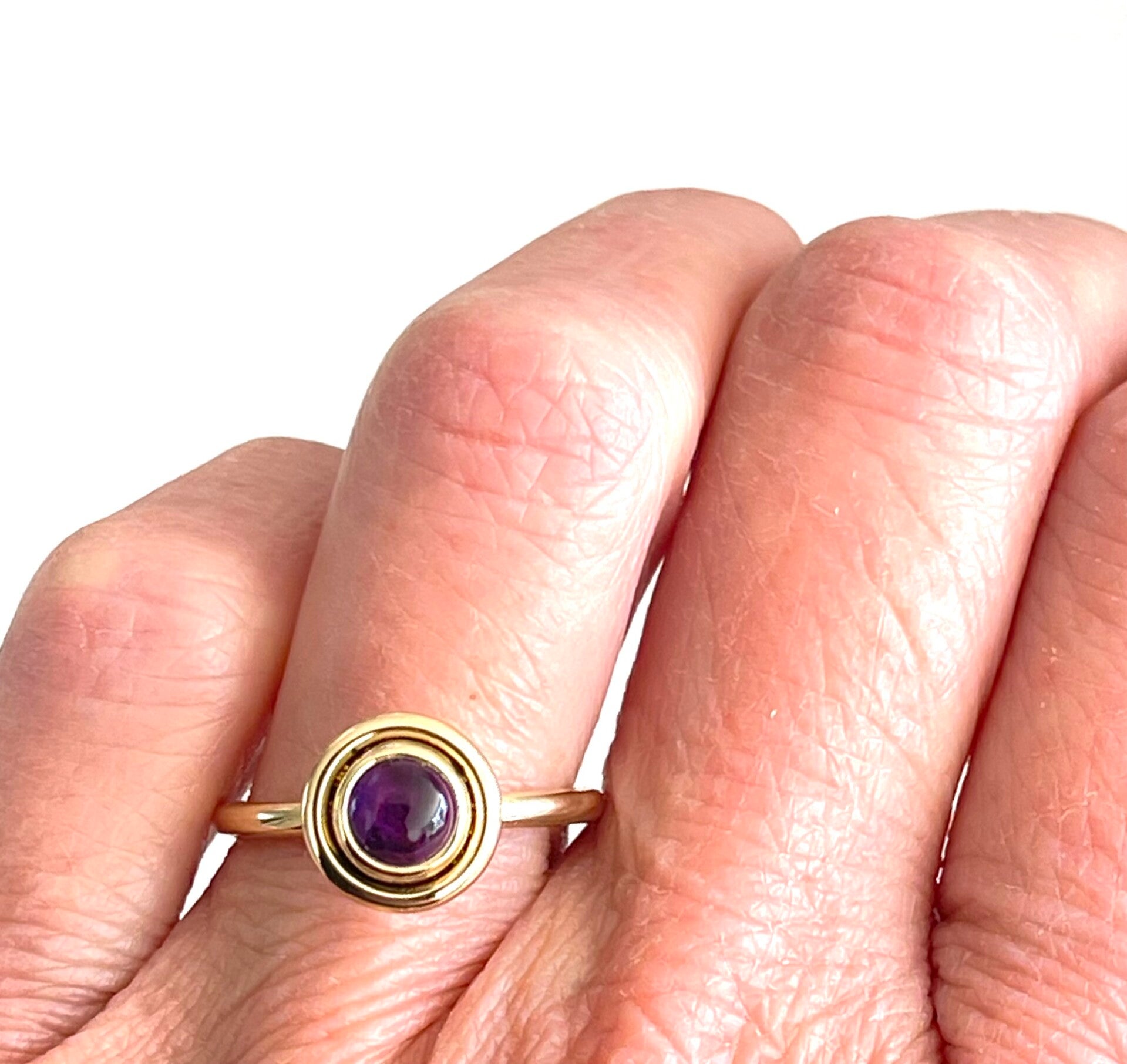 Deze prachtige handvervaardigde gouden ring bezet met Amethist behoort tot onze Rosita's Mix collectie.