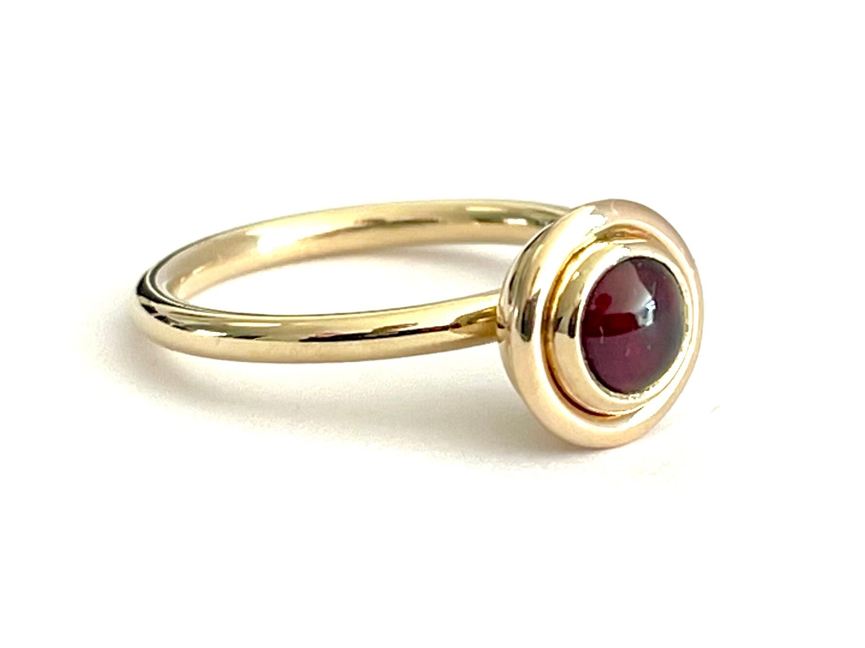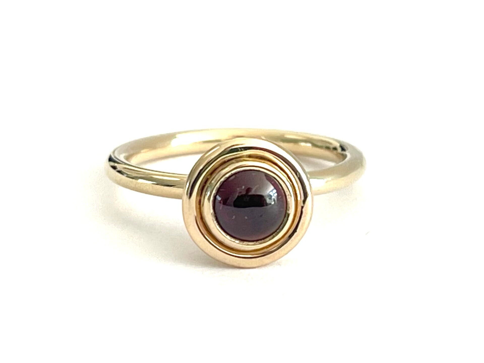 Deze prachtige handvervaardigde gouden ring bezet met Granaat behoort tot onze Rosita's Mix collectie.