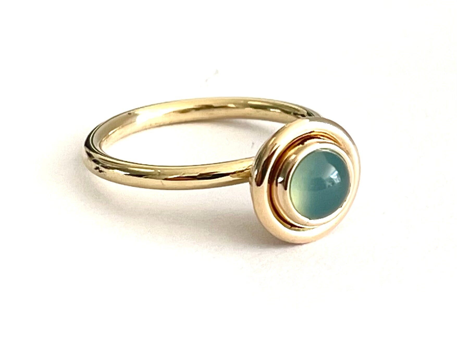 Deze prachtige handvervaardigde gouden ring bezet met Chalcedoon behoort tot onze Rosita's Mix collectie.