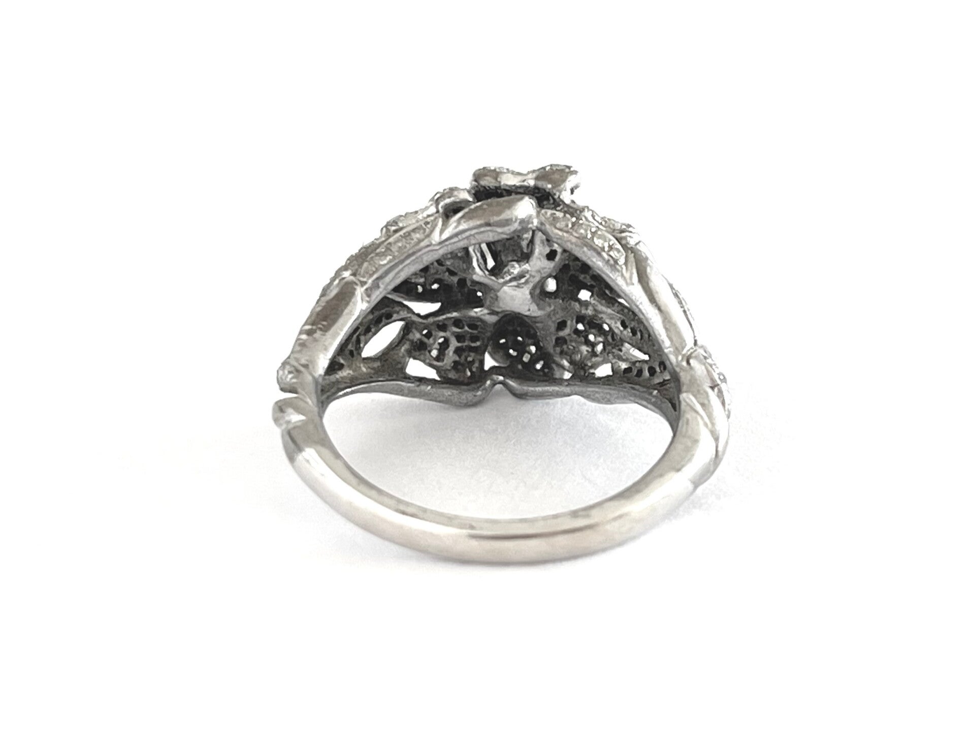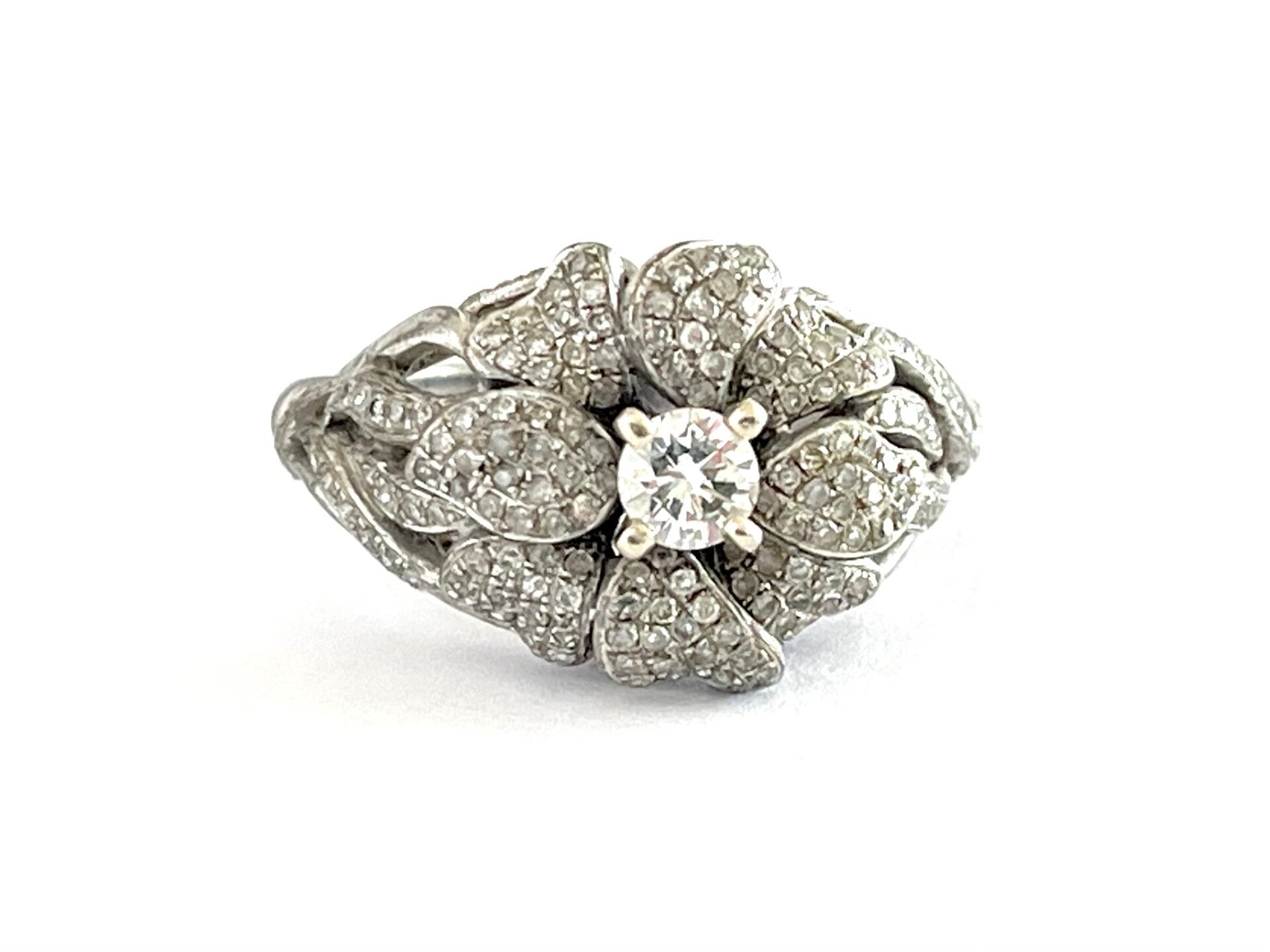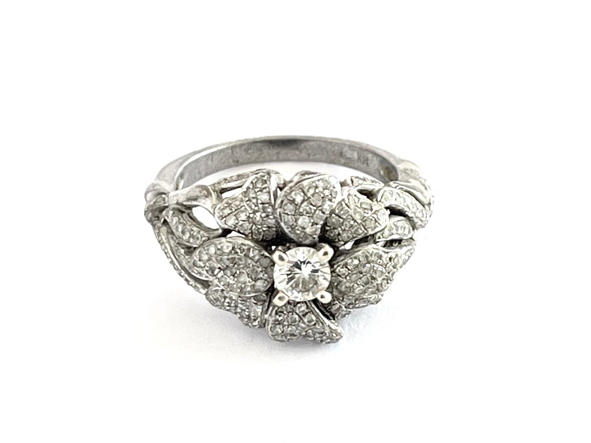 Deze prachtige vintage 14 krt Witgouden ring is bezet met Diamanten.