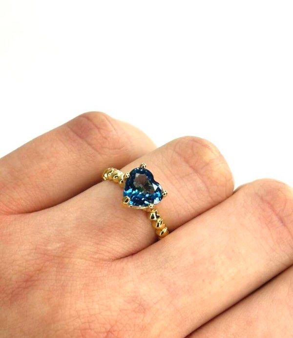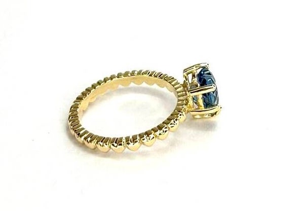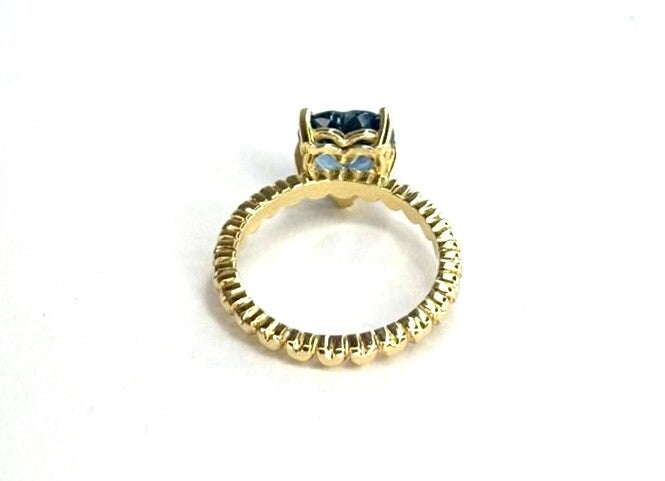 Deze prachtige handvervaardigde Geelgouden ring bezet met London Blue Topaas behoort tot onze Rosita's Mix collectie.