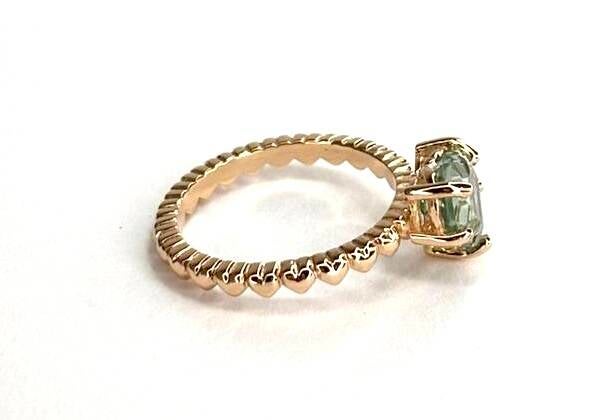 Deze prachtige handvervaardigde Roségouden ring bezet met Prasioliet behoort tot onze Rosita's Mix collectie.