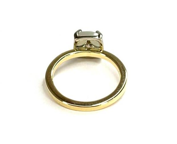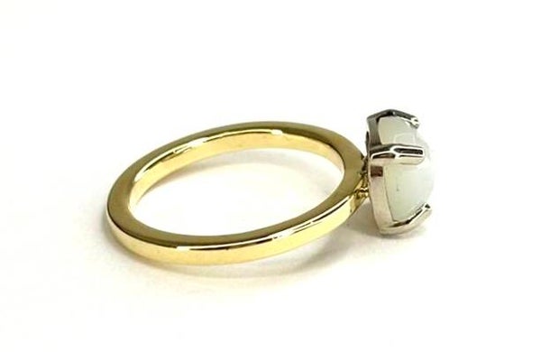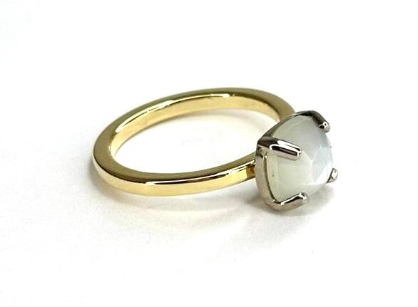 Deze prachtige handvervaardigde Witgoud met Geelgouden ring bezet met Maansteen behoort tot onze Rosita's Mix collectie.
