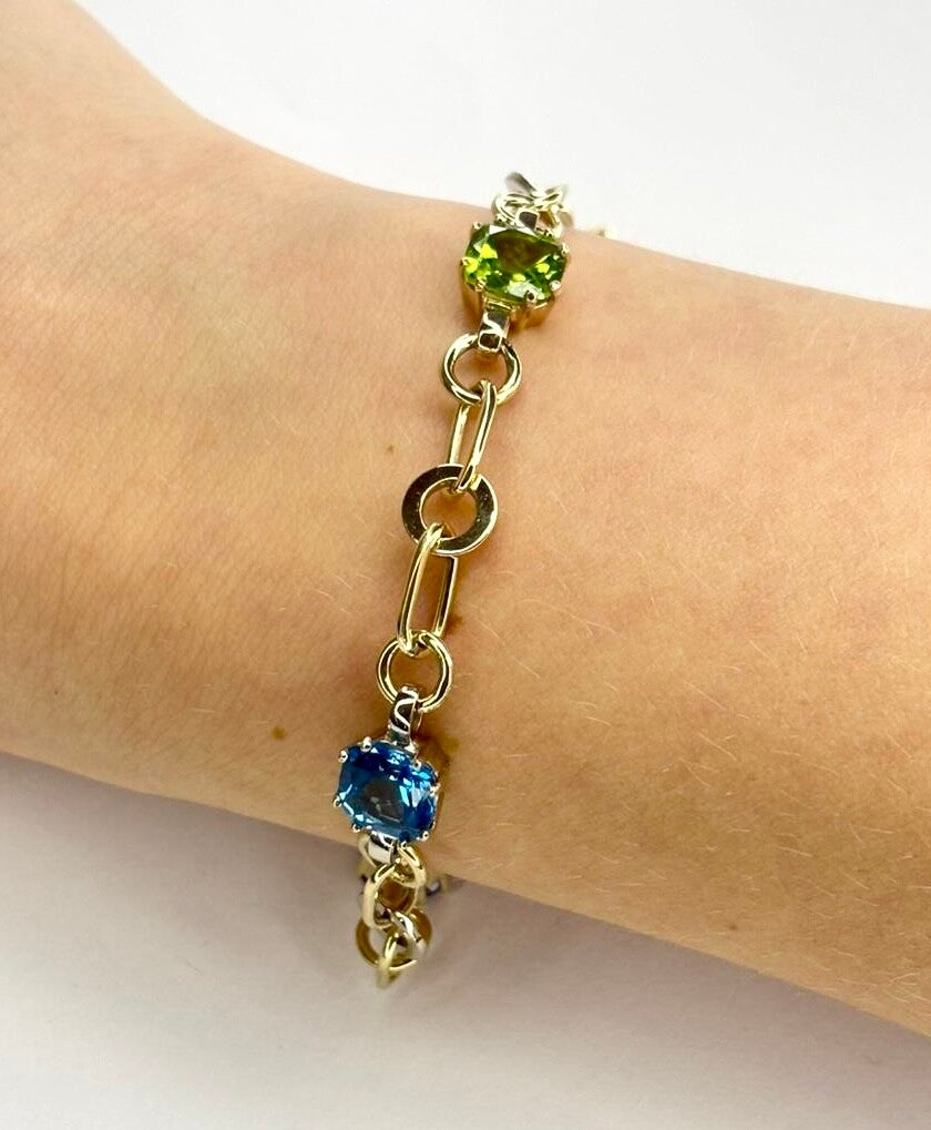 Prachtige handvervaardigde 14 Krt Geelgouden armband met Synthetisch Robijn,Topaas, Peridot, Amethist