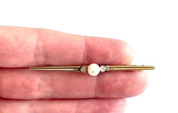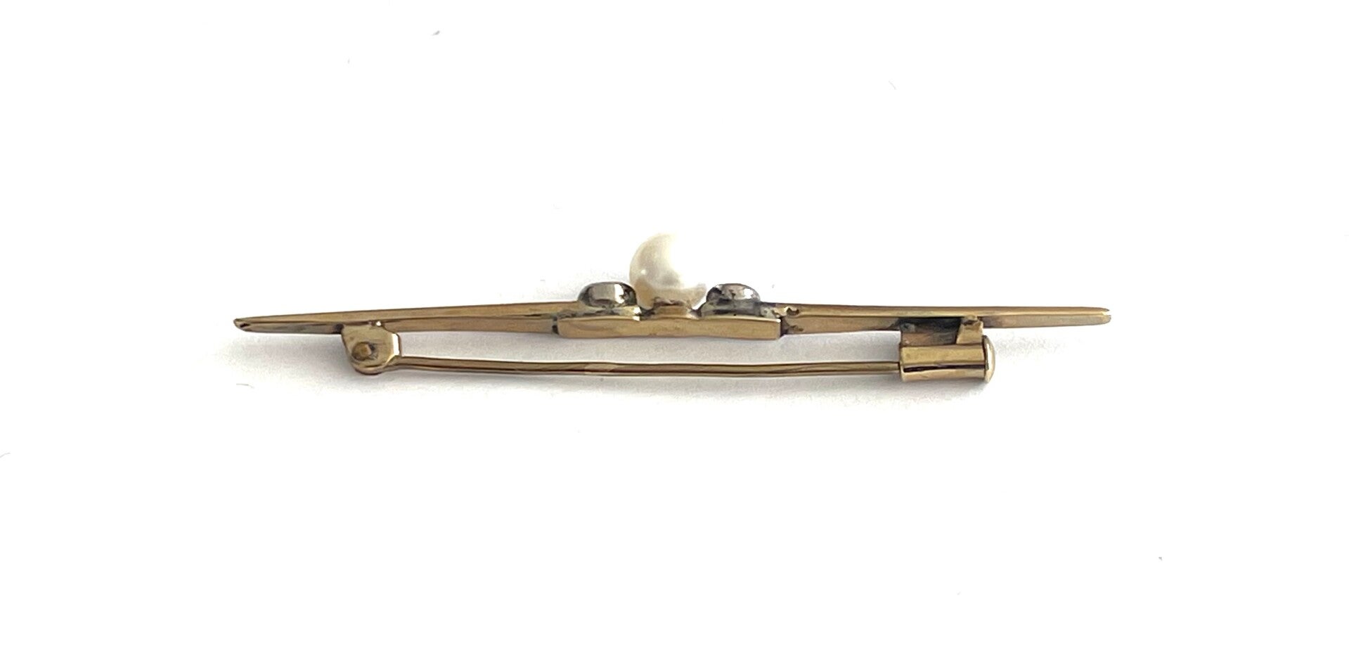 Gouden antieke broche bezet met Parel en Roosdiamant