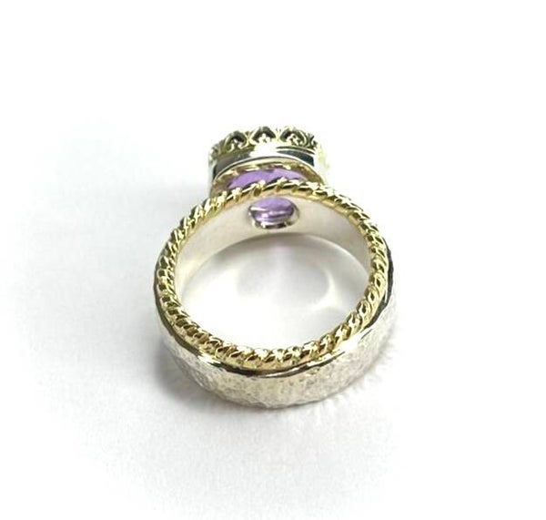 Deze schitterende handvervaardigde zilver en geelgouden ring met Amethist behoort tot onze Joy collectie.