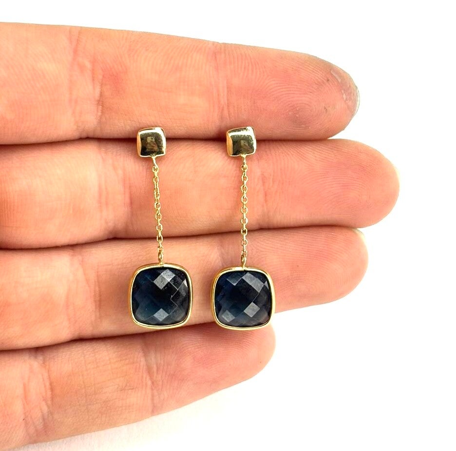 Deze prachtige Geelgouden oorbellen zijn bezet met London Blue Topaas