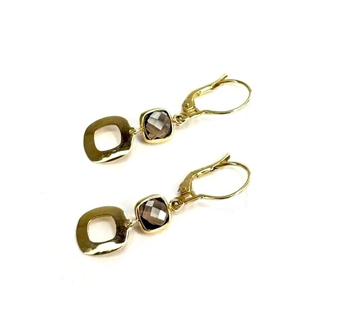 Deze prachtige Geelgouden oorbellen zijn bezet met Rookkwarts