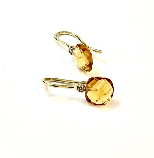Prachtige handvervaardigden Geelgouden Hollandse haken met Citrine en diamant.