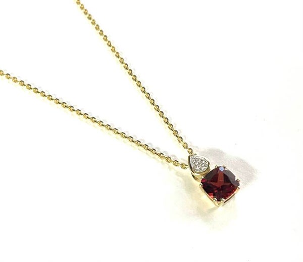 Prachtige Geelgouden hanger met Granaat en Diamant.