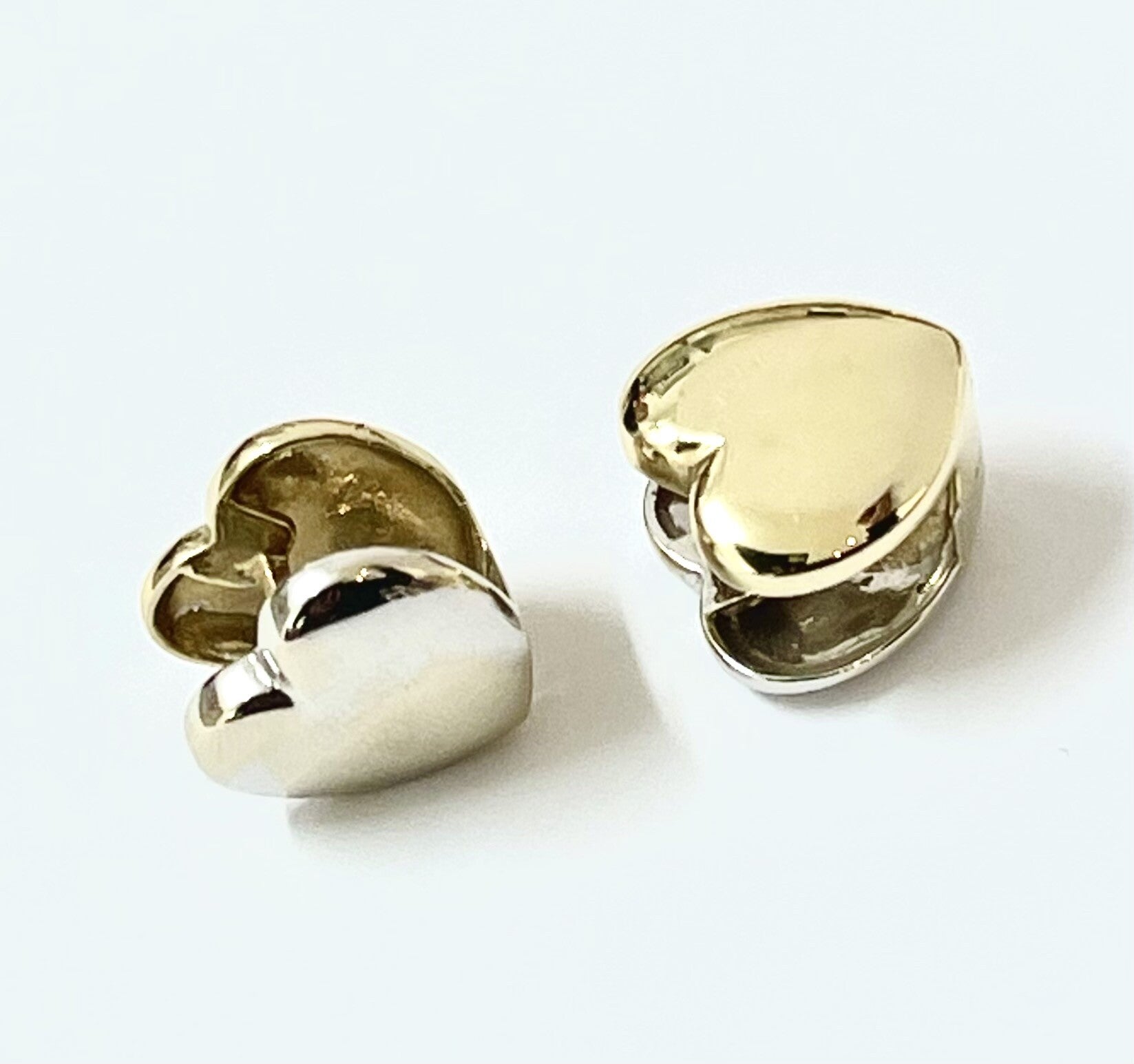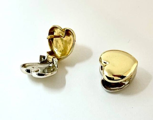 Deze prachtige Hart klap creolen zijn aan de ene zijde Geelgoud en aan de andere zijde Witgoud.