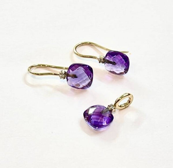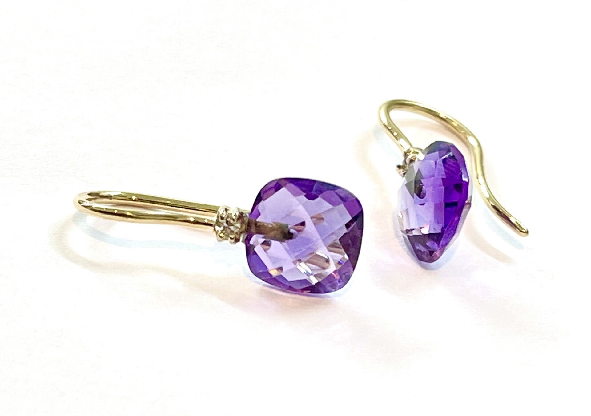 Prachtige handvervaardigden Geelgouden Hollandse haken met Amethyst en diamant.