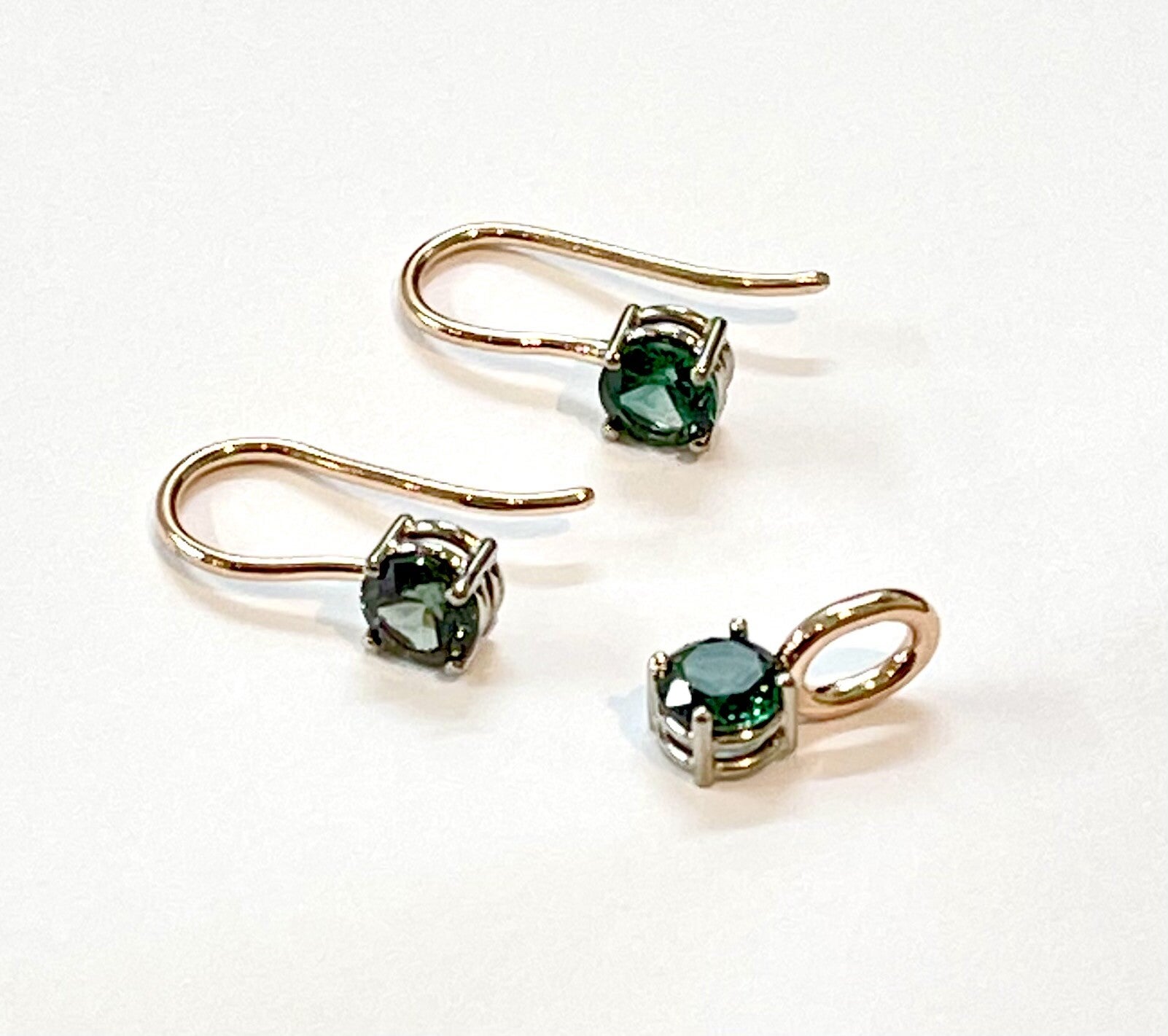 Prachtige handvervaardigden Roségouden Hollandse haken met Witgouden zetting bezet met Groen Spinel.