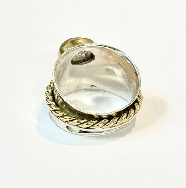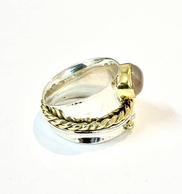 Prachtige zilveren ring met vergulde details bezet met Roze Kwarts