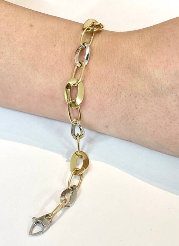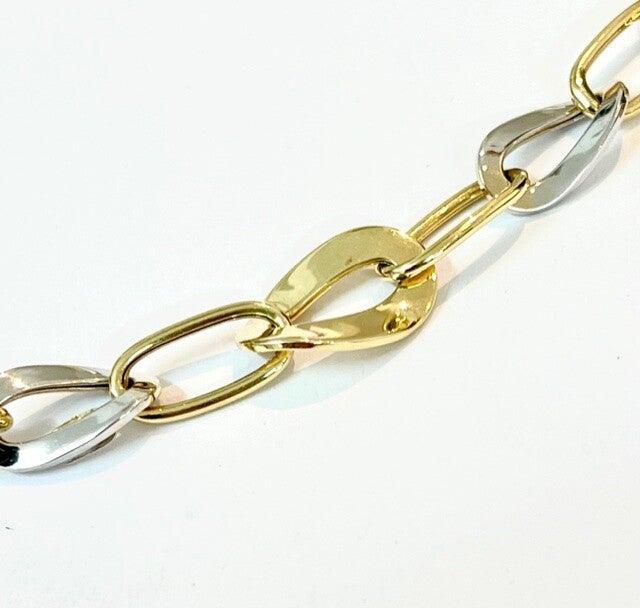 Prachtige 14 krt Geelgouden met Witgouden Chunky Chain armband.