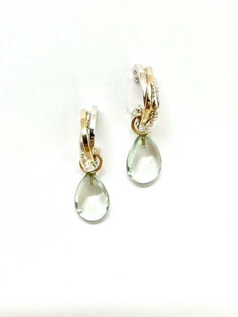 Creolen Zilver met Geelgoud en Prasiolite