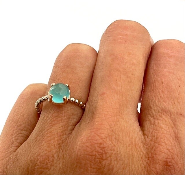 Deze prachtige handvervaardigde gouden ring bezet met Blue Chalcedony behoort tot onze Rosita's Mix collectie.